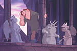 Kot zvemo v prologu je tisti, ki vsako jutro budi parizane s udiharjanjem po zvonu, nihce drug kot zvonar po imenu Quadimodo (dobesedno ime pomeni "na pol narejen"). Tam je ze vse svoje zivljenje. Ko je bil se cisto majhen, mu je zlobni sodnik Claude Frollo ubil mater. Claude se je kljub zverinskemu dejanju pocutil nekako odgovornega za majhnega otroka. (ki pa takrat se ni kazal znake pretirane modificiranosti) Osamil ga je na vrhu Notredamske cerkve. Naj zvoni. Naj zvoni Parizu. Minilo je namrec ze dvajset let in Quasimodo je zrastel v postnega in cilega mladenica. Ker mu je bilo prepovedano, da kdaj koli zapusti notredamski zvon, na skrivaj opazuje mnozice pod njim in upa, da bo nekoc eden izmed njih. V vsem tem bednem zivljenju spozna tri kamnite kipce: Victorja, Hugota in Laverna. Postanejo njegovi prijatelji in skupaj ubijajo neskoncni dolgcas. Tistega dne se pribluzuje dan norcev. Quasimodo zeli na vsak nacin nastopiti in se pokazati. Zato se odloci, da bo tako tudi naredil. Na tekmovanju sponza prelepo plesalko Esmeraldo. Nato s svojo prepricljivo zaunanjostjo nastopi na tekmovanju norcev. Izberejo ga za kralja norcev. A ko sodnik kmalu ugotovi, da Quasimodo namrec sploh ne nosi maske, ljudje zavzdihnejo, se preplasijo in napadejo ubogega zvonarja. Plesalka Esmeralda ga poskusa resiti, a oba aretirajo. |